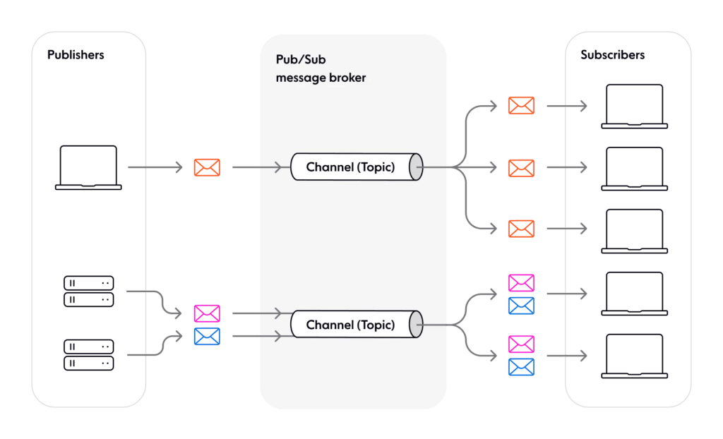 - Các client đã subscribe channel đó sẽ nhận dữ liệu ngay lập tức.