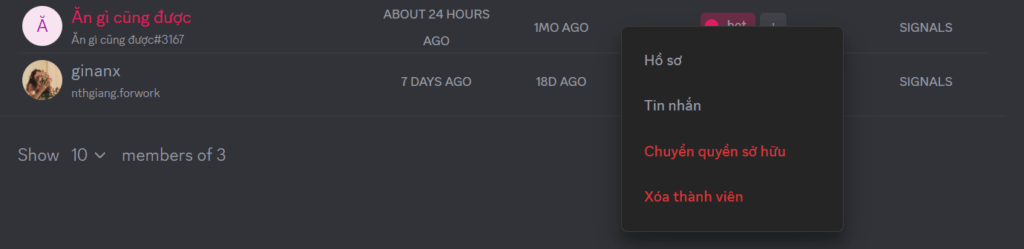 Trước hết, bạn có thể truy cập mục Thành viên trong Clan để xem danh sách tất cả Bot và App đang hoạt động.