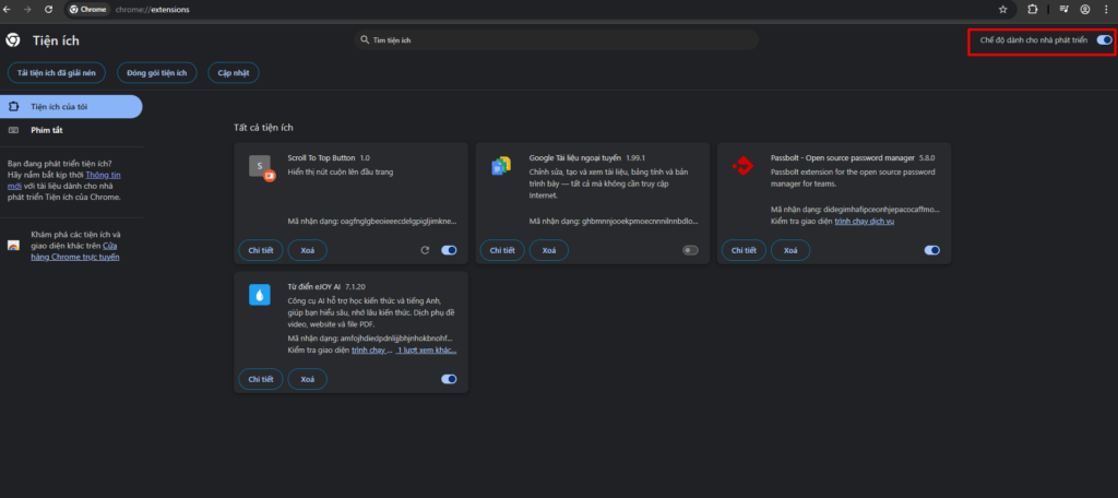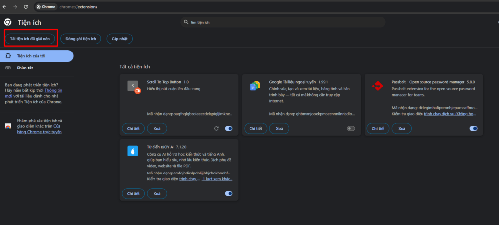 • Chọn tải tiện ích đã giải nén -> chọn folder chứa extension đã viết