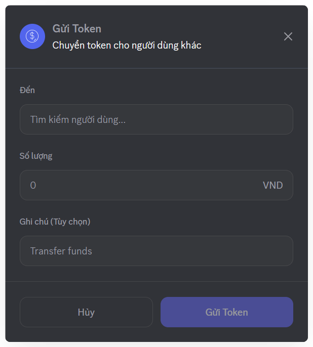 Mezon cho phép người dùng gửi nhận Token ngay trong ứng dụng thông qua: